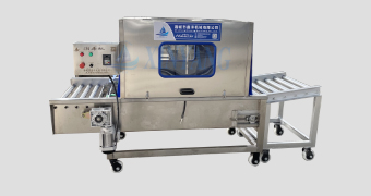 將消毒液體進行離分子霧化后輸入到霧化室,箱體經(jīng)過霧化室時周身被霧化后的消毒液覆蓋從而達到消毒殺菌的效果,該設備配合消毒液對物品外包裝進行消毒滅菌。